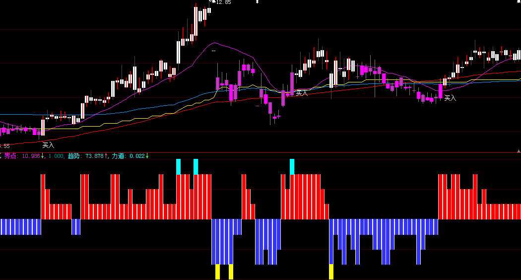 趋势:EMA(0.667*REF(BB,1)+0.333*BB,2),LINETHICK0,colorFFFF00;