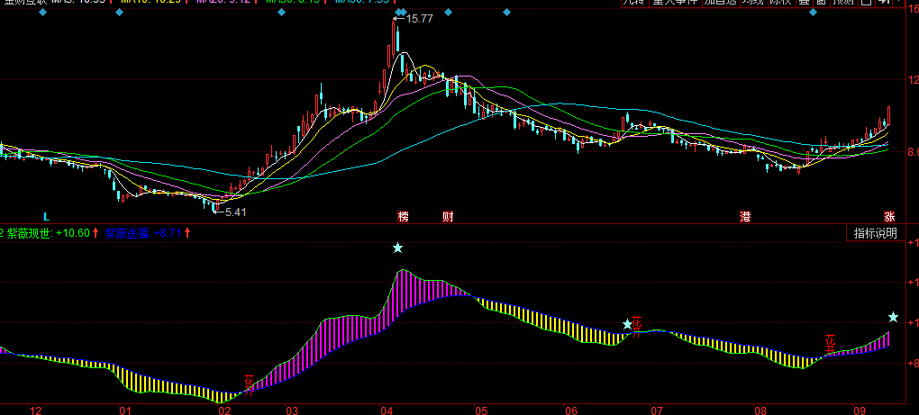 DRAWTEXT(CROSS(紫薇现世,紫薇送福) AND KSKP,LOW*1.095,'花\n开'),colorred,Linethick3;