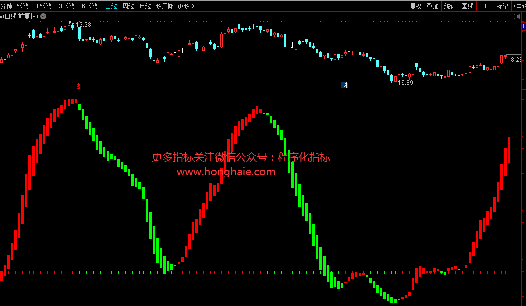 程序化指标:=A12-A13,COLORRED,LINETHICK2;