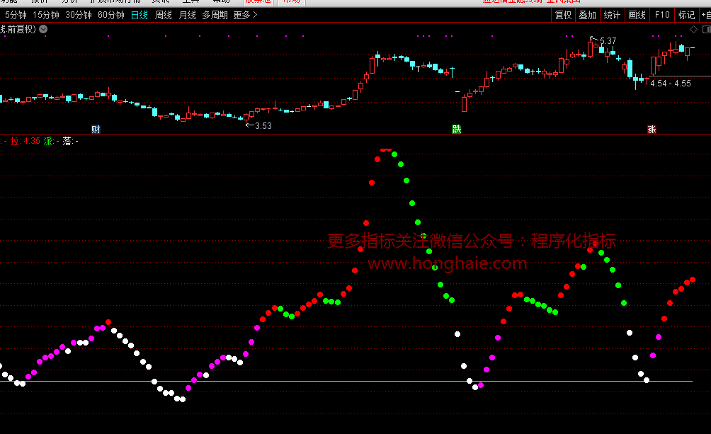 拉:IF(KP>0 AND KP>MM,KP,DRAWNULL),LINETHICK3,CIRCLEDOT,COLORRED;
