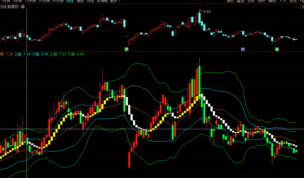 下轨:趋势-STD(CLOSE,M),COLORFFFF00;