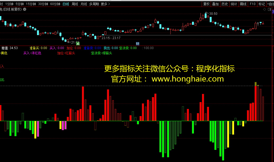 DRAWTEXT_FIX(1,0.02,0,0,'☆微信公众号:(程序化指标) ☆'),COLORRED;