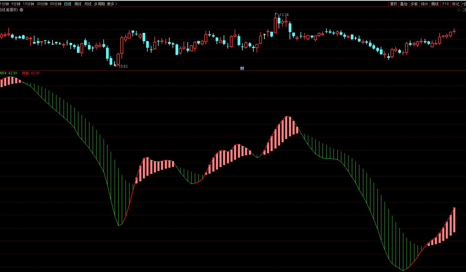 持股:IF(VAR4>REF(VAR4,1) AND VAR4>=0,VAR4,DRAWNULL),COLORRED,LINETHICK2;