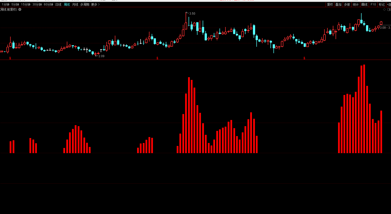 主力进场:=IF(VAR5>REF(VAR5,1),VAR5,0),COLORRED,NODRAW;