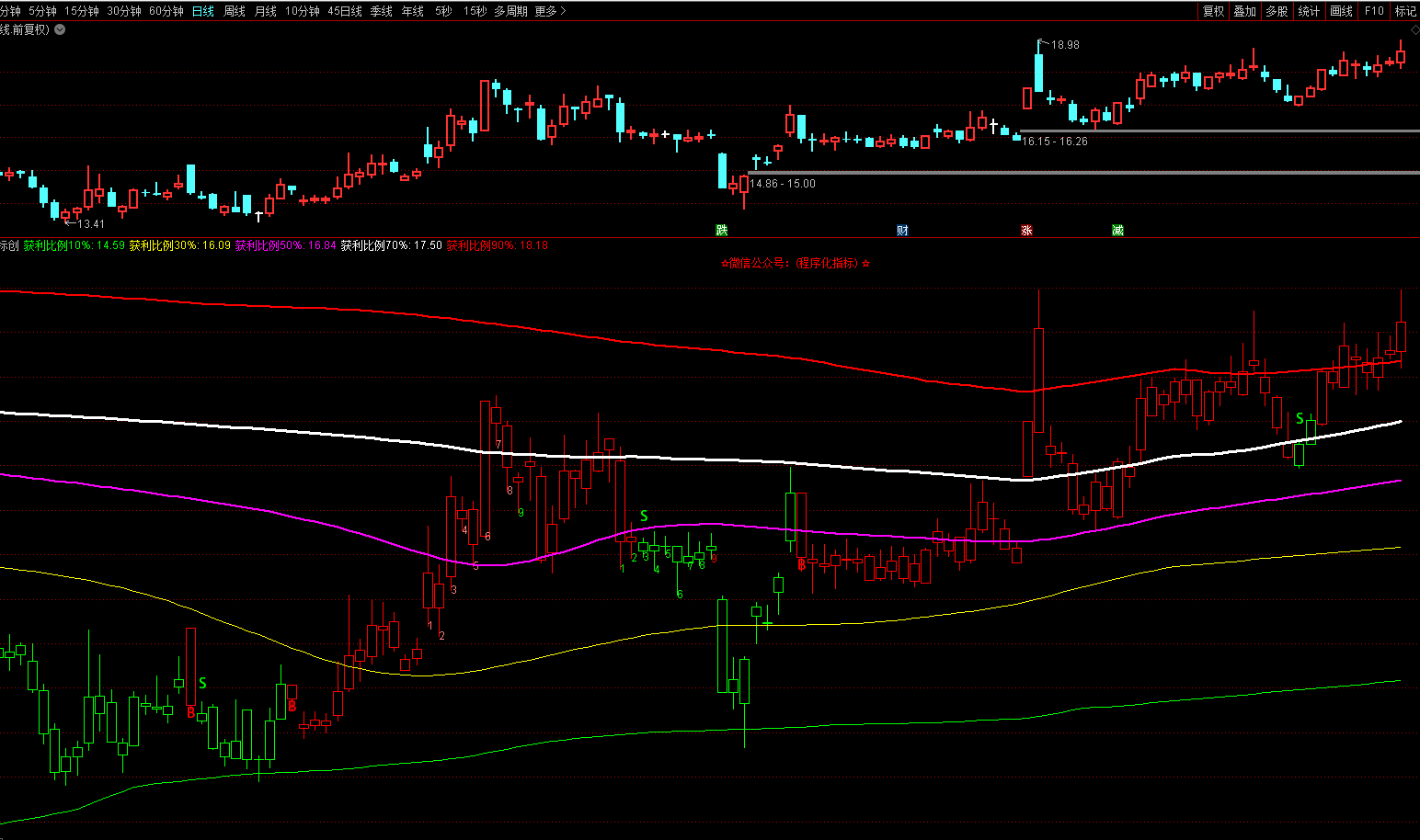 70%获利成本线(白色加粗)