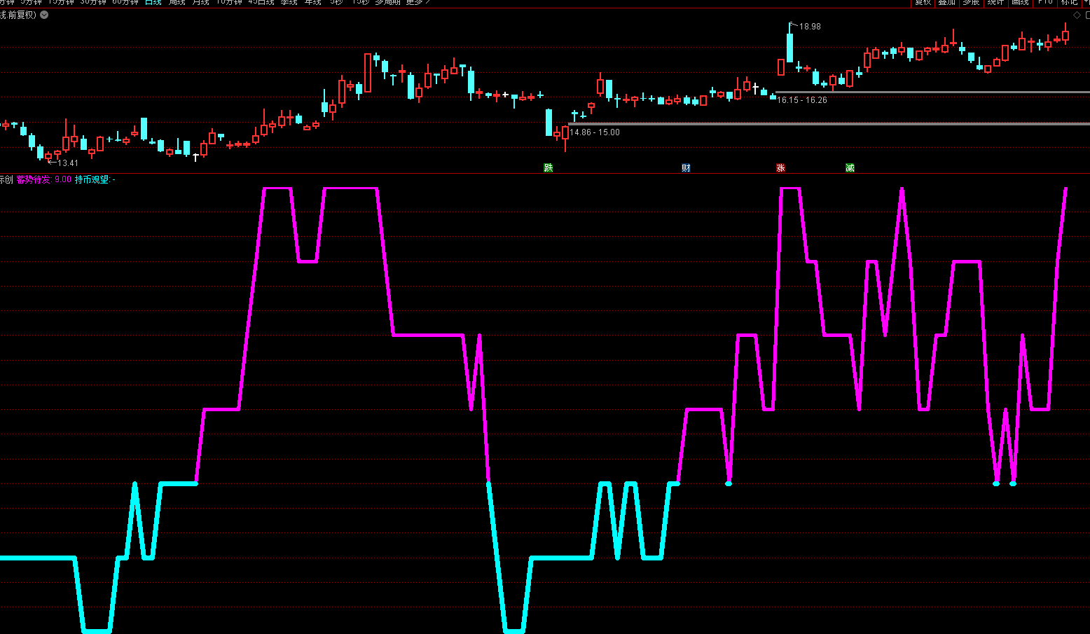 "蓄势待发"信号:当多个技术指标同时发出买入信号时,用洋红色粗线显示