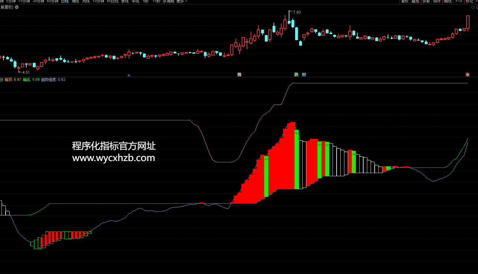 通达信箱体顶低副图指标公式源码