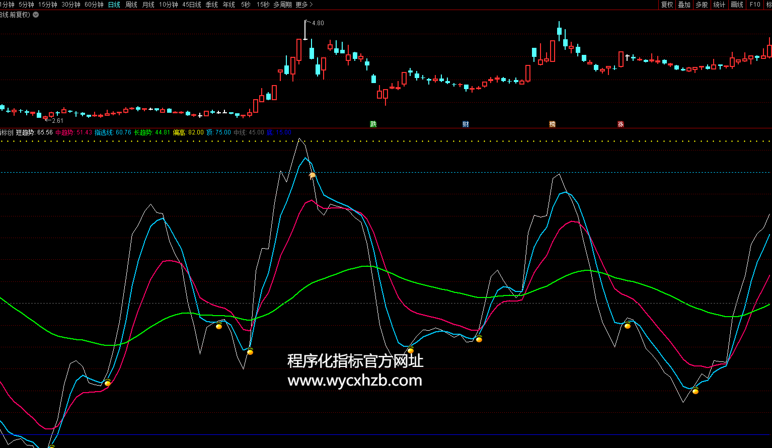 中趋势线:TJ2的3日EMA(紫色粗线)