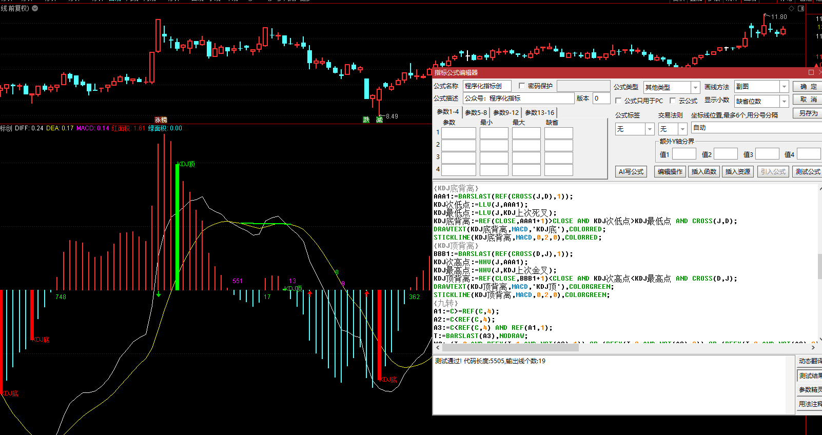DRAWTEXT(KDJ顶背离,MACD,'KDJ顶'),COLORGREEN;