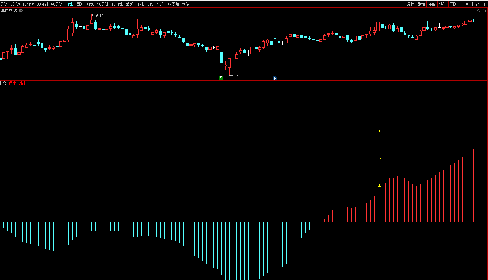 程序化指标:VAR6 * 20,COLORSTICK,COLORRED;