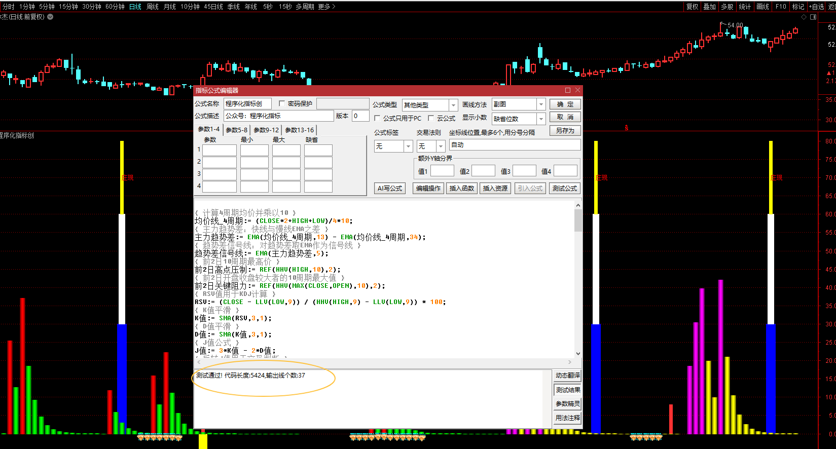 核心算法:13日与34日四价EMA差值(放大10倍处理)