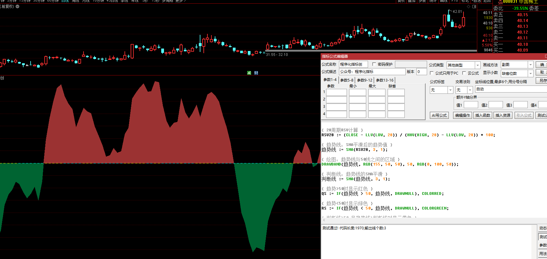 DRAWBAND(趋势线, RGB(155, 50, 50), 50, RGB(0, 100, 50));