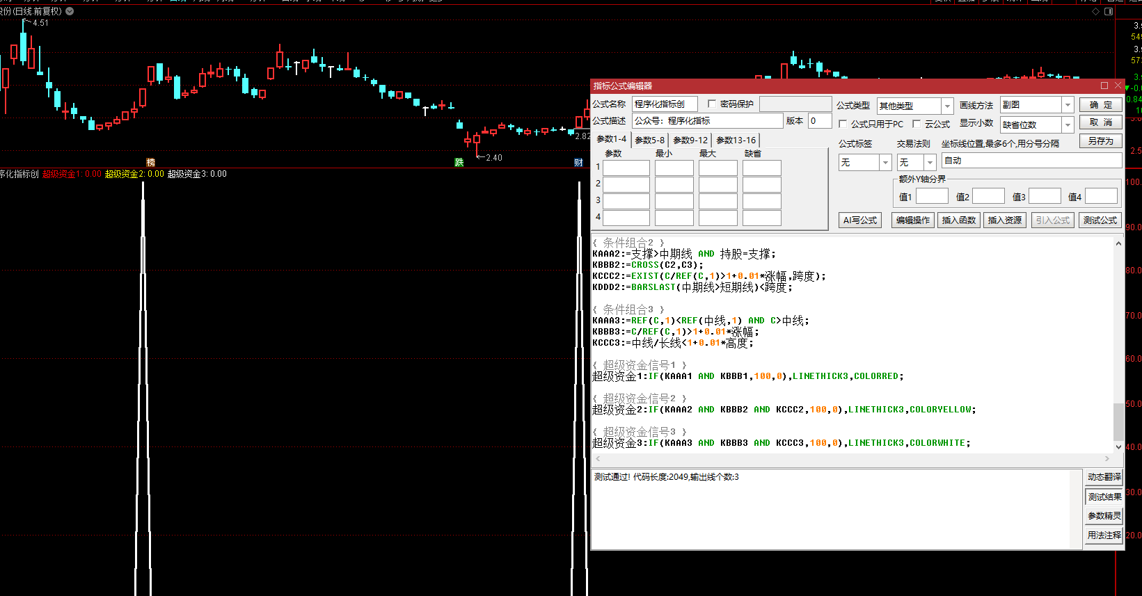 超级资金1:IF(KAAA1 AND KBBB1,100,0),LINETHICK3,COLORRED;