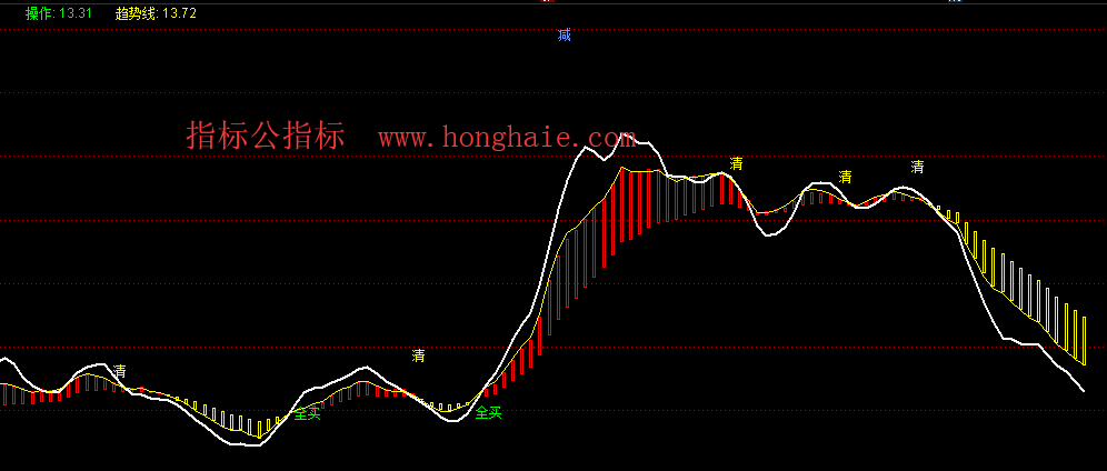 DRAWTEXT(CROSS(下线1,上线1),H*1.02,'清'),COLORYELLOW;