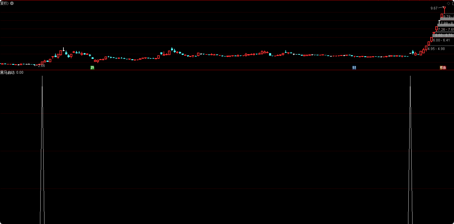 黑马启动:CROSS(行情线,中线止损线) AND C/REF(C,1)>1+0.01*C AND 中线止损线<长线止损线;