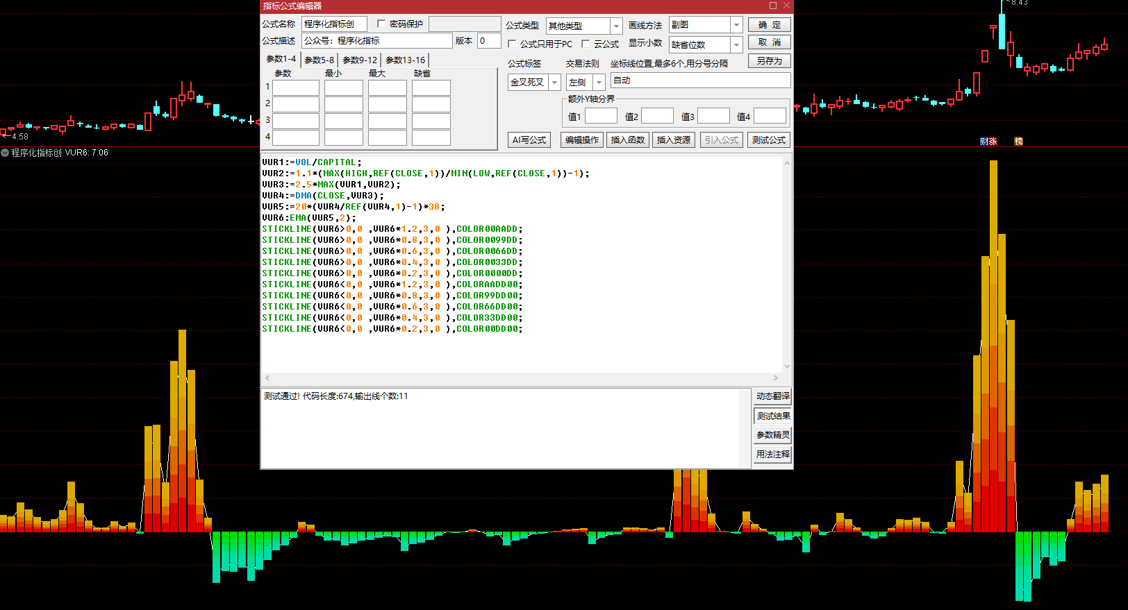 STICKLINE(VUR6<0,0 ,VUR6*0.6,3,0 ),COLOR66DD00;