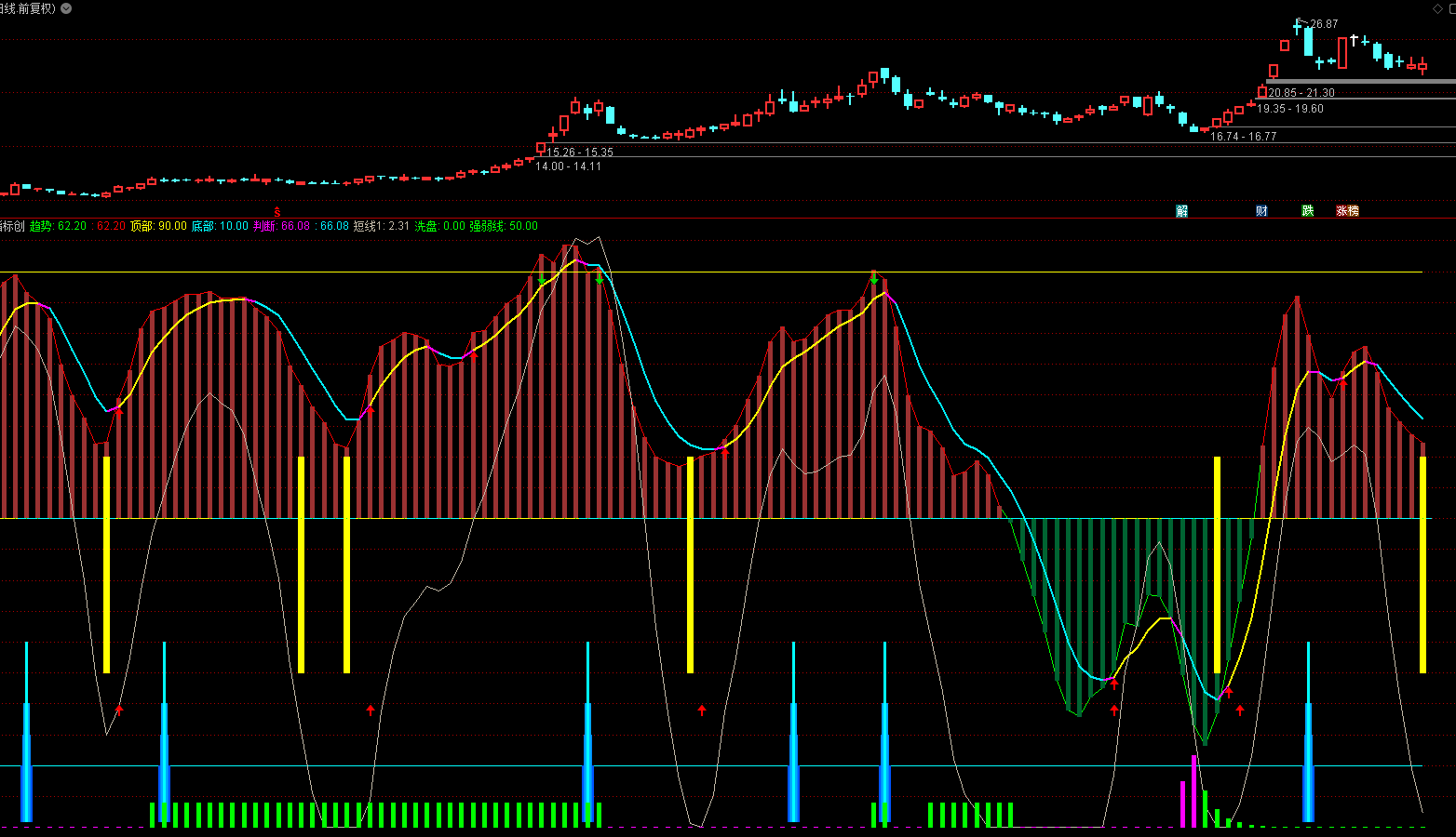 IF( 趋势>判断,判断,DRAWNULL), COLORYELLOW, LINETHICK2;