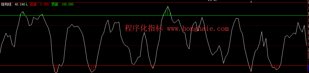 B1:=C<REF(C,4);B2:=C>REF(C,4);D1:=B2 AND REF(B1,1);D2:=B2 AND REF(D1,1);D3:=B2 AND REF(D2,1);D4:=B2 AND REF(D3,1);D5:=B2 AND REF(D4,1);D6:=B2 AND REF(D5,1);D7:=B2 AND REF(D6,1);D8:=B2 AND REF(D7,1);D9:=B2 AND REF(D8,1);D10:=B2 AND REF(D9,1);结构线:3*K-2*D;STICKLINE(结构线<0,结构线,0,2,0),COLORRED;STICKLINE(结构线>100,结构线,100,2,0),COLORGREEN;底部:0,LINETHICK1,COLORRED;顶部:100,LINETHICK1,COLORGREEN;