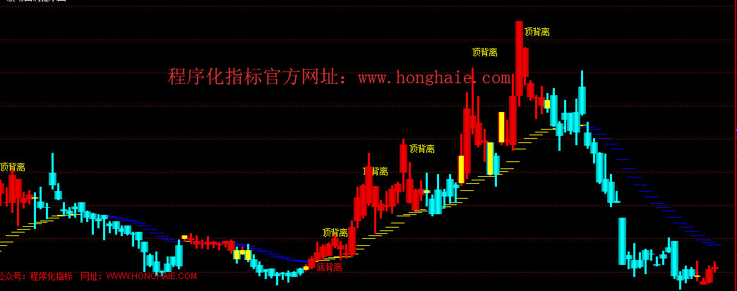 DRAWTEXT_FIX(C>O,0.01,0.9,0,' 微信公众号:程序化指标    网址:WWW.HONGHAIE.COM '),COLORRED;