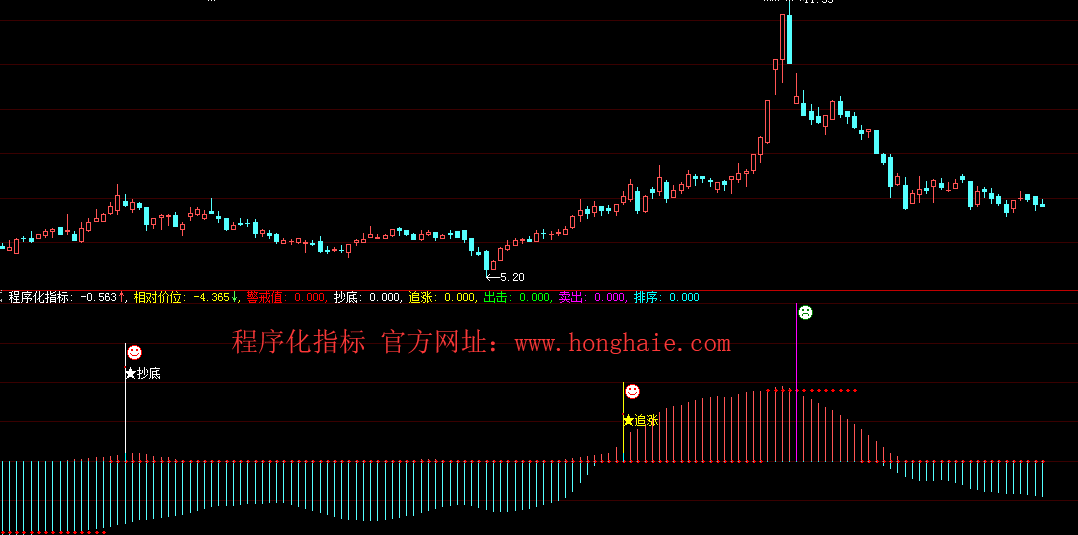 出击:if(买>0,5,0), STICK,COLORGREEN;