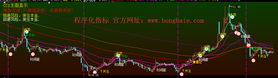 DRAWTEXTABS(15,45,'回避风险,保住本金.'),colorYellow,LINETHICK2;