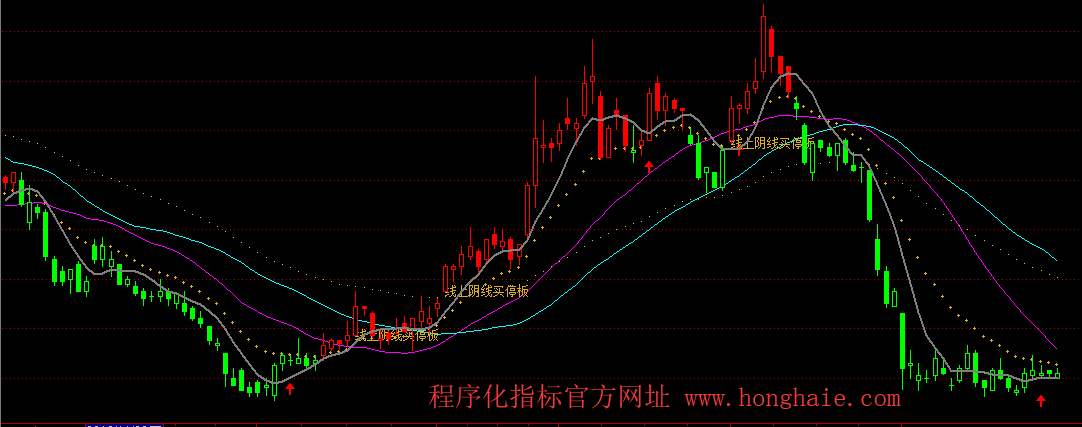DRAWTEXT(CROSS(A4,A3),L,'线上阴线买停板'),LINETHICK4,COLOR22ACDE;