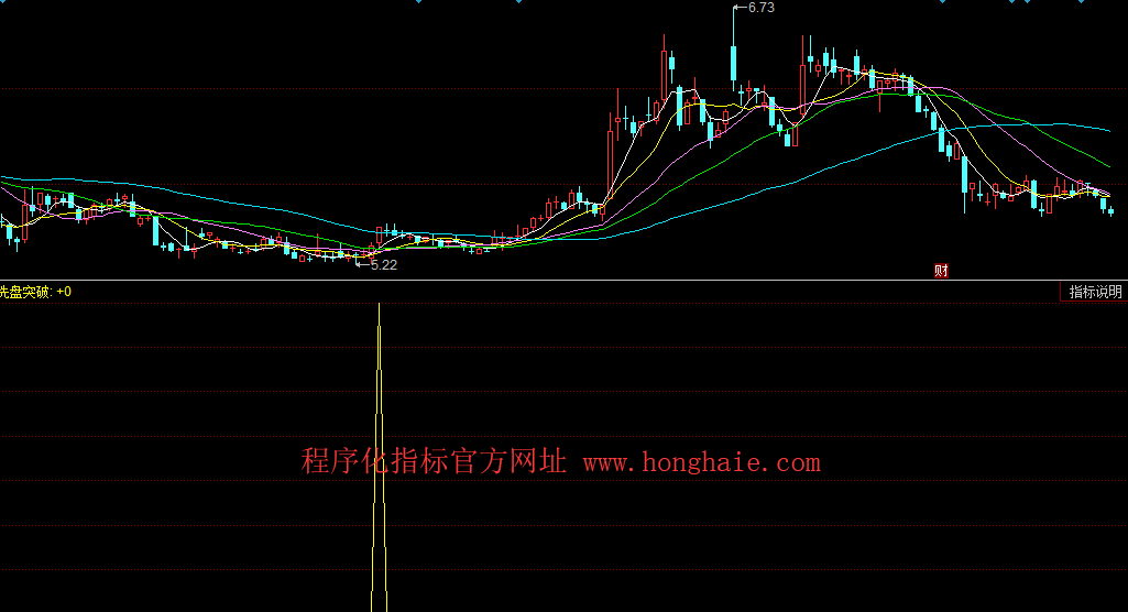 (REF(HHV(H,5),1)=REF(HHV(H,9),1) AND CROSS(C,REF(HHV(C,5),1))//程序化指标官方网址 www.honghaie.com