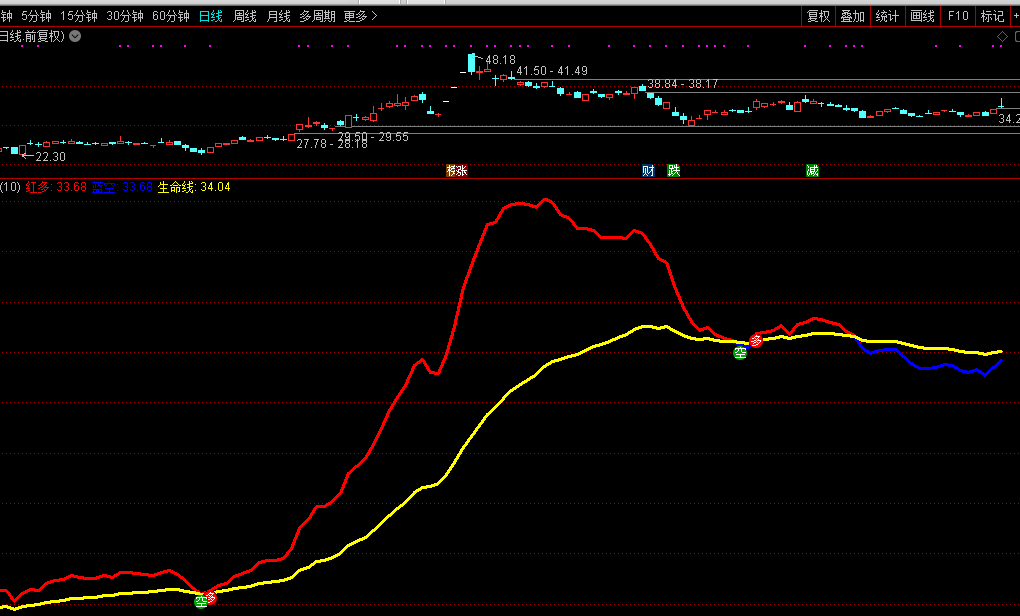 蓝空:IF(红多>X_3,X_3,红多),COLORBLUE,LINETHICK3;