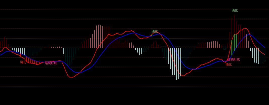 DRAWTEXT(TFILTER(TG,MACD<0,1),DIF*1.02,'结构形成'),COLORMAGENTA;