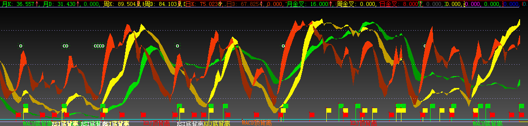 大智慧RSI KDJ MACD 日周月 底背离 金叉公式