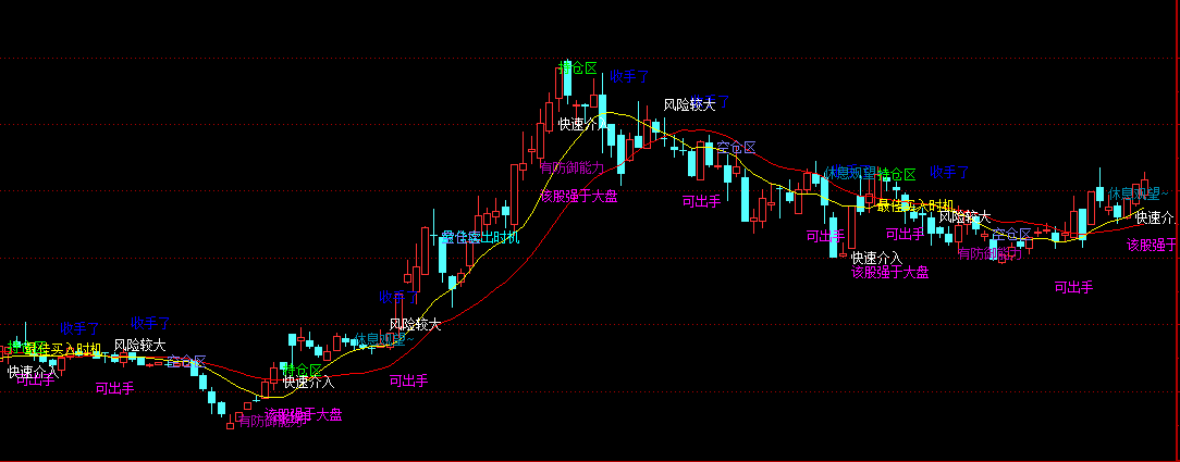 DRAWTEXT(CROSS(MA(CLOSE,5),MA(CLOSE,10)),L*0.92,'可出手'),COLORFF00FF;