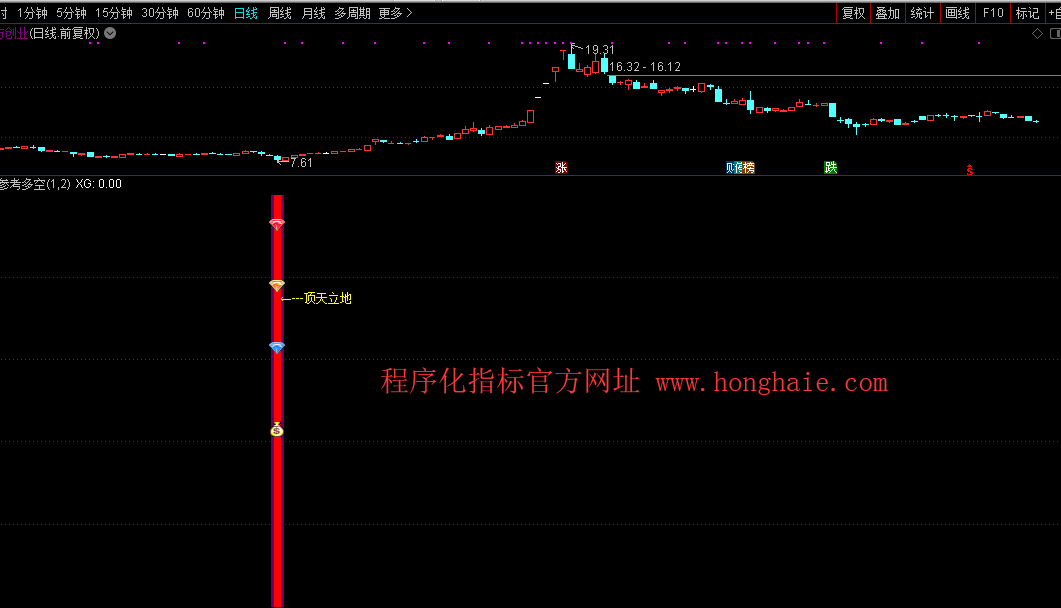 DRAWTEXT(XG,+0.75,' ←---顶天立地'),COLORYELLOW;