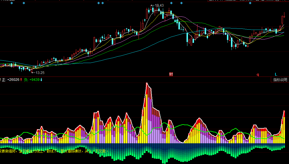 STICKLINE(正>0 AND 正>REF(正,1),正*2/5,0,10,0),COLOR10FFFF;