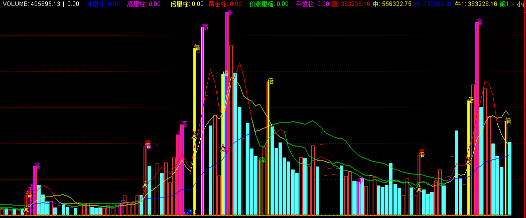 DRAWTEXT(地量柱,VOL+3000,'地'),COLORBLUE;