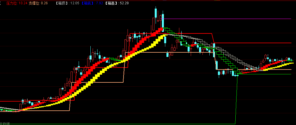 压力位:IF(CROSS(J24,J),H,REF(H,BARSLAST(CROSS(J24,J)))),COLORRED,LINETHICK2;