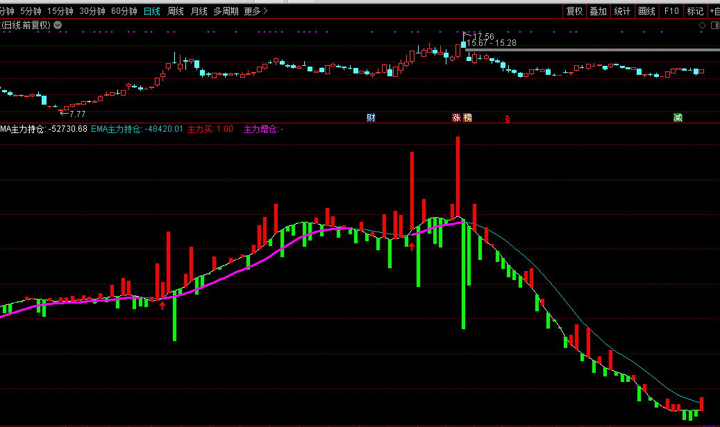 MA主力持仓:SMA(主力持仓,15,1),COLORWHITE,LINETHICK1;