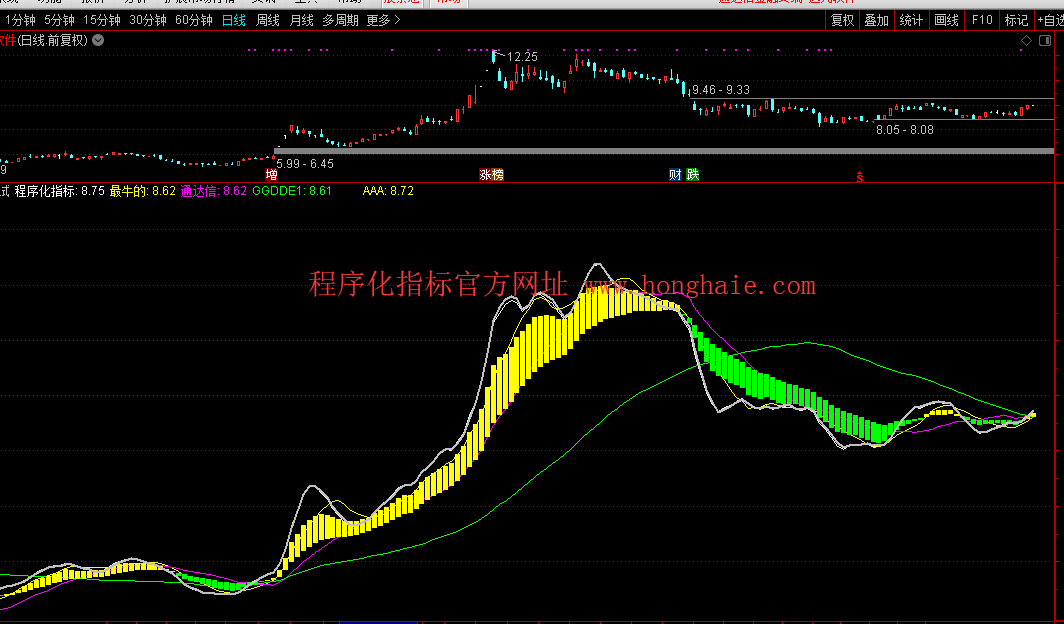 波段指标公式:=5;M2:=10;M3:=20;M4:=60;