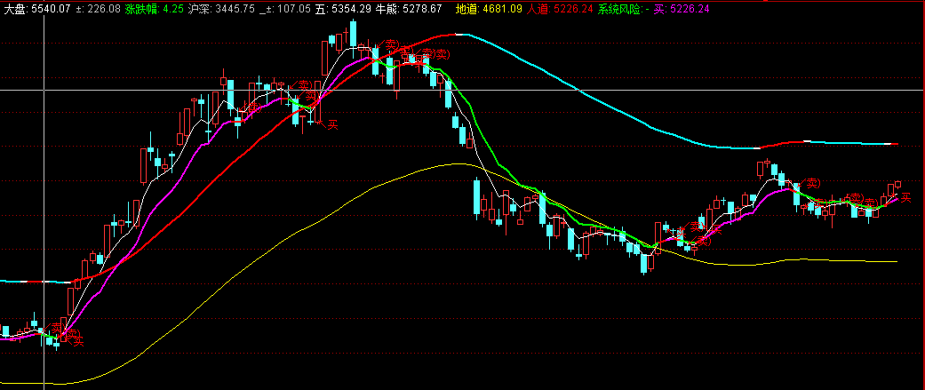 系统风险:IF(大盘<人道 OR 五<人道, 人道,DRAWNULL),LINETHICK2,COLORGREEN;