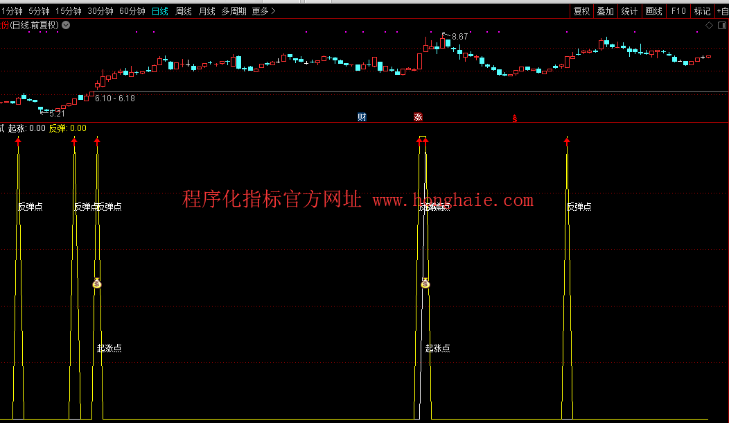 T2:=HHV(H,5)/LLV(L,5)<1.25;{程序化指标官方网址 WWW.HONGHAIE.COM}