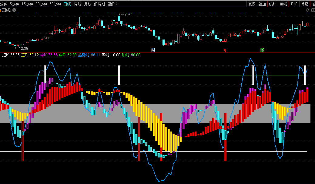 STICKLINE(中K<=中D,中K,中D,0.1,0),COLOR00FFFF;