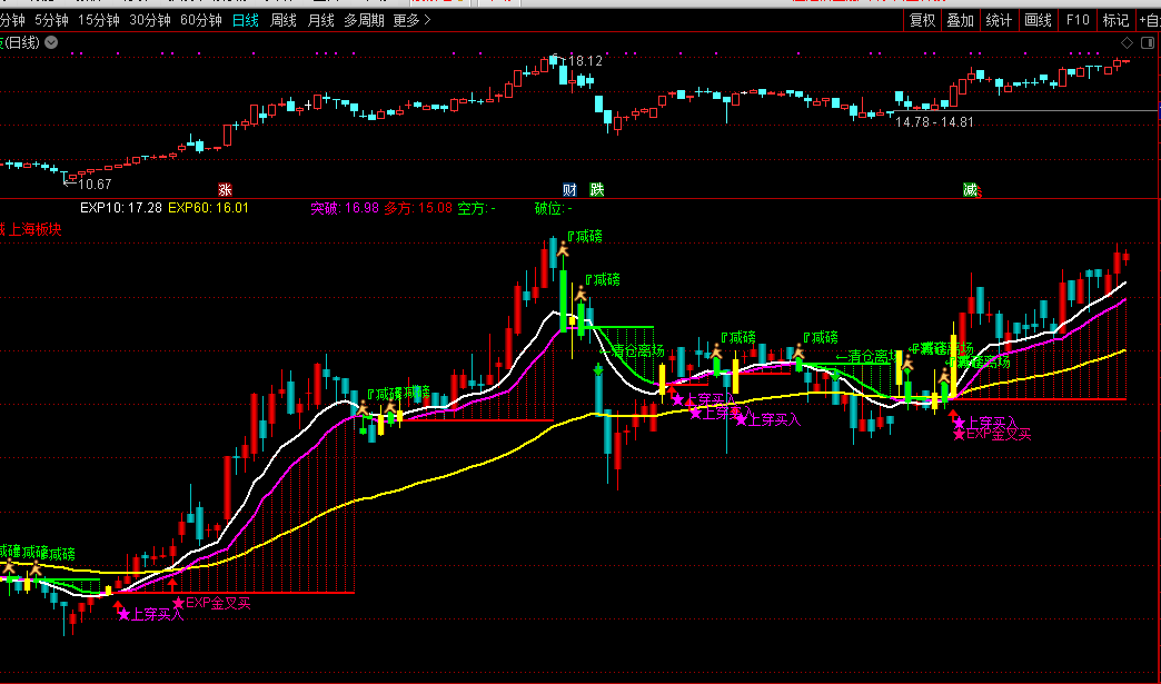 突破:REF(EMA(C,14),1)COLORMAGENTA,LINETHICK2;