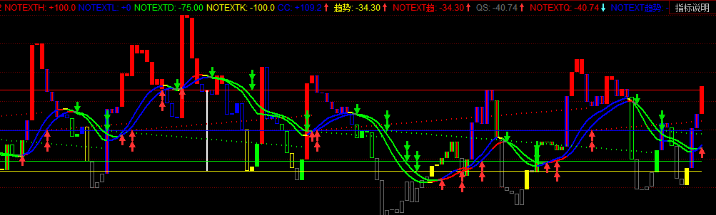 NOTEXT趋势:IF(CC>QS AND CC>-75,趋势,DRAWNULL),colorblue,LINETHICK2;