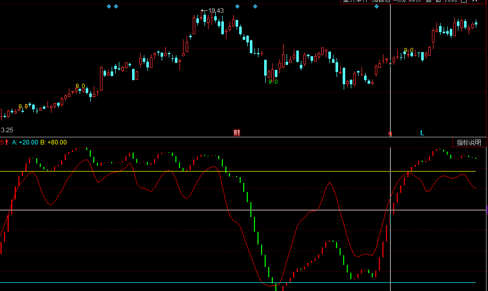 STICKLINE(D1>=REF(D1,1),D1,D2,3,0),colorred;