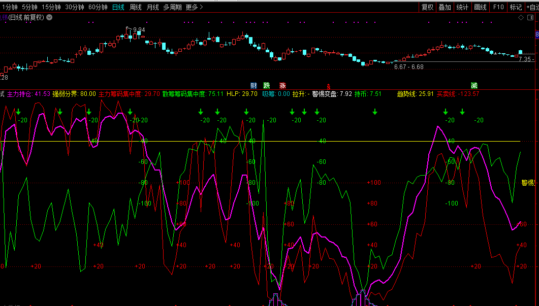 持币:IF(A1X<0,突破,DRAWNULL),COLORGREEN,NODRAW;