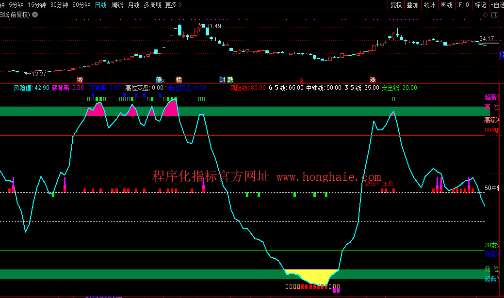高位区:=风险值<95 AND 风险值>90,COLORLIGREEN,NODRAW;