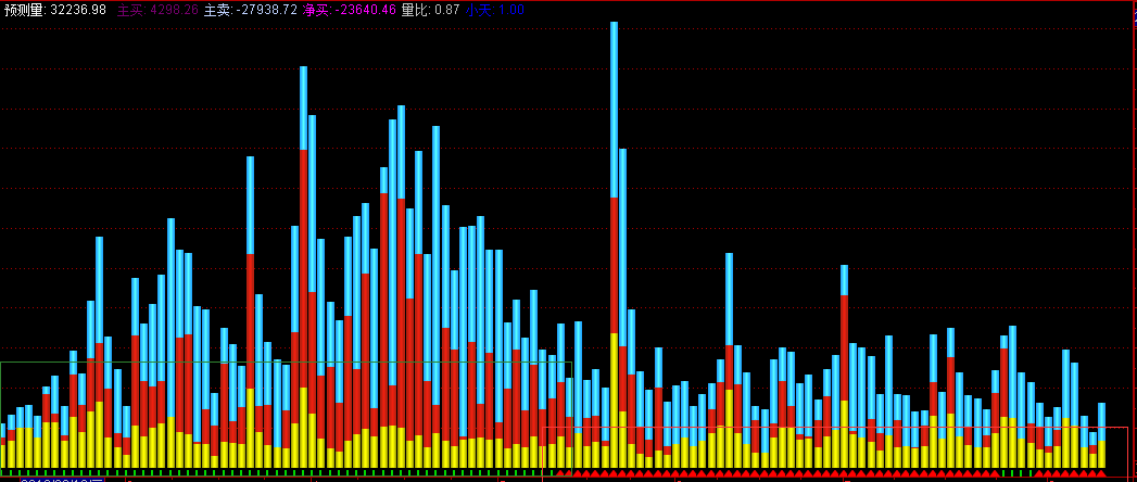 主卖:IF(CLOSE>OPEN,0-V0001*((HIGH-CLOSE)+(OPEN-LOW)),IF(CLOSE<OPEN,0-V0001*(HIGH-LOW),0-VOL/2)),COLORFFD1BE,NODRAW;