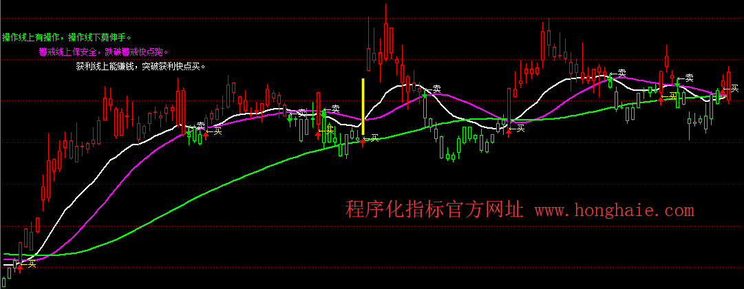DRAWTEXT_FIX(1,0.05,0.15,0,'警戒线上保安全,跌破警戒快点跑。')COLORFF00FF;