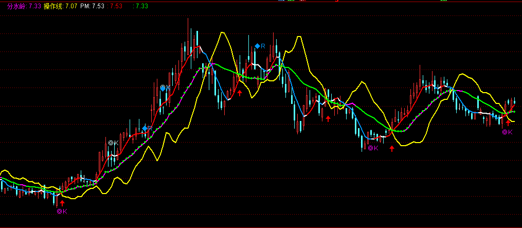 DRAWICON(CROSS(分水岭,操作线),L*0.95{分水岭-0.1},1);{买入红箭头}