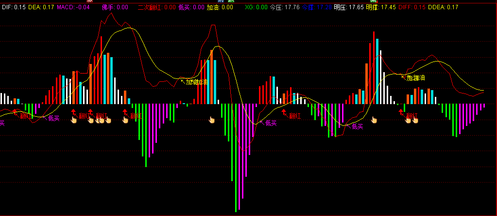 DRAWTEXT(CROSS(DIF,DEA) AND DIF>0,DEA-0.05,'↖加油'),COLORYELLOW;