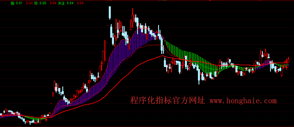 STICKLINE(程序化指标>化,程序化指标,化,0.1,1),COLORFF0080;
